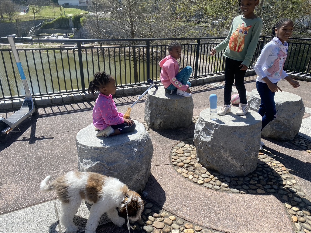 So instead of biking, we settled on just bringing Coco to the park and walking over to Ponce City Market to try and enjoy some outdoor shopping afterwards. Seemed safe enough, and everything was going fairly well at first. Sure there was the requisite fussing along the way…(everyone wanted to play on the playground equipment before walking Coco, suddenly after bringing scooters instead of bikes no one wanted to actually ride them alongside Coco, Sloane for some reason was super fussy…but I chalked that up to her not having a nap yet…).