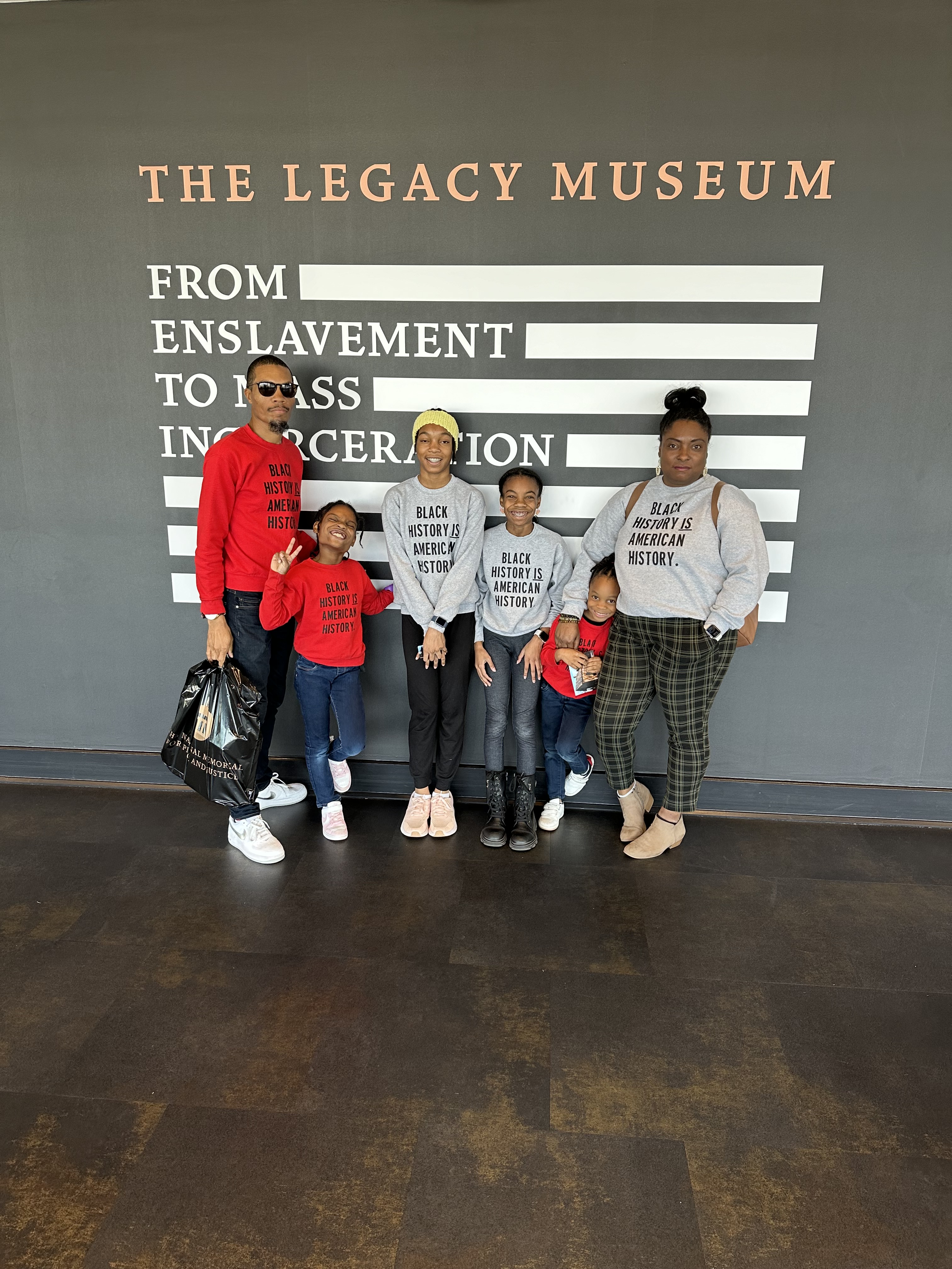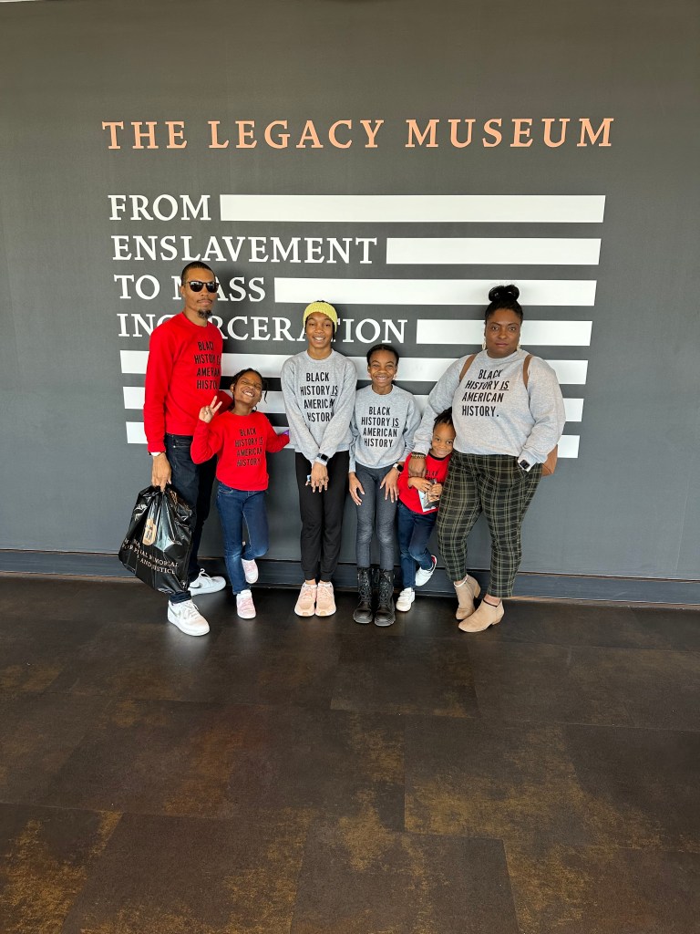 One final thought for those who choose to visit the Legacy Museum as we did: spend more time in the final room (the one with the big gold ceiling). There must have been hundreds of Black luminaries and their stories on the walls and coming at the end of the journey through our history in this country, it was a good opportunity to end on an uplifting note. We should have spent more time there. As we realized later in our debrief it’s easy to get caught up in the trap of thinking that our experience starts with slavery, or that all of our experiences have been bad and that’s just not true. We are a resilient people with a history that predates our time in this country (as my daughter Riley reminded me herself… we’re doing something right with that one!).