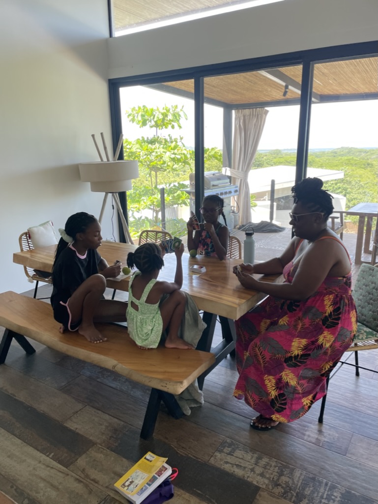 This is my view from the top of the mountain, literally and figuratively. To my left is a breathtaking range of Costa Rican tree-top covered mountains. Directly in front of me is a view of the Pacific Ocean. Im sitting on the edge of the infinity pool listening to the jetted water lap the side. Because it’s still early in the morning, there’s only the sound of birds chirping and insects buzzing around. Soon, the kids will certainly make their presence known, but for now it’s just me and the stillness, silence, and solitude of my Costa Rican slice of paradise. And now they’re awake. Pura vida.